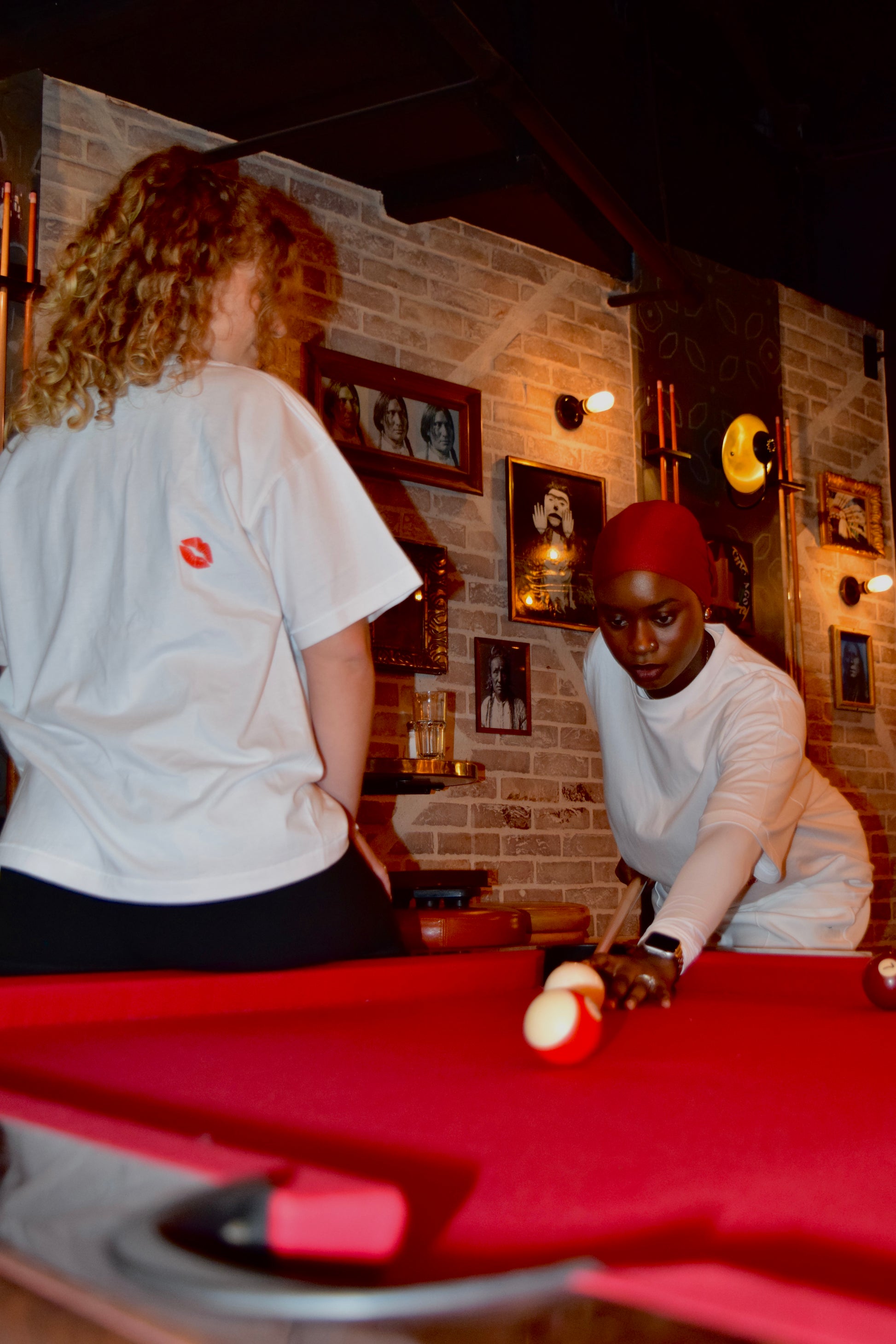 T-shirt à manches coutes blanc avec un petit bisou imprimé sur l'avant et également sur l’arrière du vêtement.